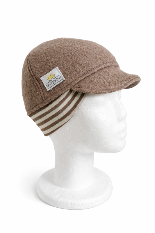 Diese handgemachte Wollmütze mit Schirm wird aus hochwertigem Wollwalk gefertigt und hält angenehm warm. Der Wollwalk ist atmungsaktiv und temperaturausgleichend, das weiche Bündchen sorgt für einen bequemen Sitz und schützt die Ohren vor Kälte.